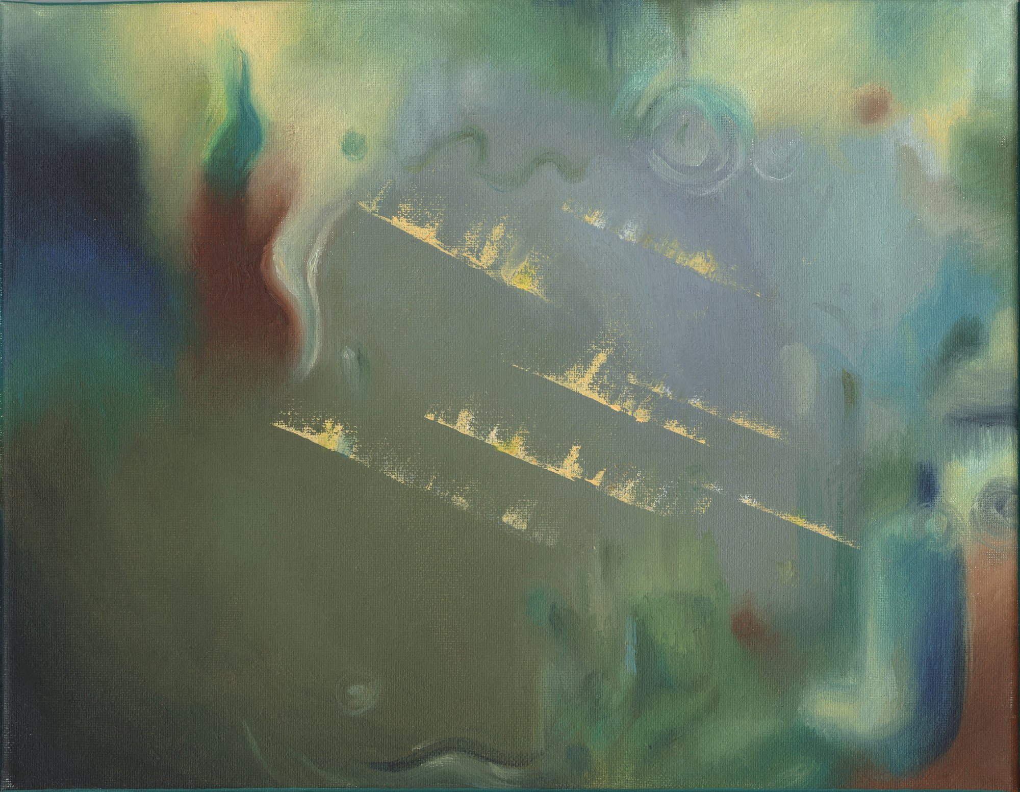 Through her unique artistic synesthesia, Jules translates music into color and form—painting what she sees as she listens. The original piece was created with oil on canvas, capturing the emotional landscape of the song in vivid, textured strokes.